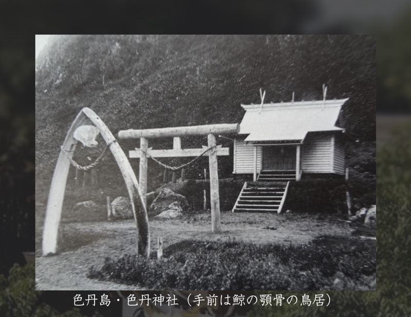 色丹島は捕鯨を生業にする島で、神社の鳥居もクジラの顎骨でつくられています。